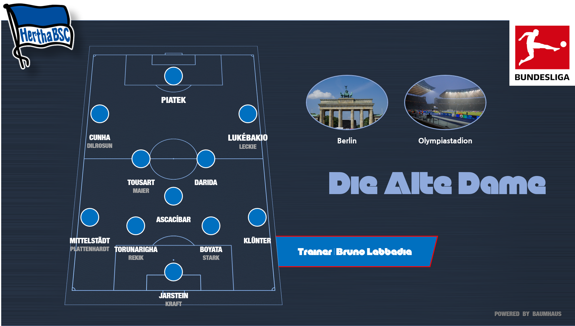 다시, 브루노 라바디아는 자기 능력을 검증받을 만한 충분한 시간이 주어진 적이 없다고 변호할 수 있습니다. 그가 경험이 풍부하고, 나름대로 산전수전 다 겪은 인사인데도 불구하고, 그가 새로운 감독이 됐다는 소식을 접한 축구광들이 그의 성공을 확신하거나, 그의 밑에서 대략적인 "경기 그림"을 좀처럼 그리지 못하는 이유입니다. 라바디아가 이끈 팀들의 전체적인 무게 중심은 언제나 중앙선 위로 올라가 있었습니다. 바이어 04 레버쿠젠에서는 파트리크 헬메스와 슈테판 키슬링, 두 최전방 공격수의 파괴력을 앞세워서 상대 수비를 찍어 눌렀고, 함부르거 SV에서는 피오트르 트로호프스키와 다비트 야롤림, 제 호베르투, 엘제로 엘리아(현 이스탄불 바샤크셰히르 FK 소속) 등, 미드필더들의 공격력을 극대화했습니다. VfB 슈투트가르트에서는 허이널 터마시를 중심으로 공격을 전개했고, 마틴 하니크와 베다드 이비셰비치 같은 선수들이 마침표를 찍었습니다. 지난 시즌, VfL 볼프스부르크에서는 측면 수비수들의 공격적인 움직임이 눈에 띄었고, 바웃 베흐호르스트가 선봉서 고군분투했습니다. 좋게 말하면, 지금껏, 구성된 분대에 맞게 '공격력 강화'라는 목표를 실현해 왔다고 할 수 있으나, 동시에, 감독의 철학, 그 가운데를 관통하는 무언가가 다소 모호했고, 골을 만들기 위한 세밀한 접근법이 부재했다고 풀이될 여지도 있습니다. 오늘, 라바디아 감독 선임에 베를린 노파의 안방 응원단이 가장 불안해하는 점은 결국, 하나의 거대한, 지속 가능한 톱니바퀴가 도통 그려지지 않는다는 데 있습니다.