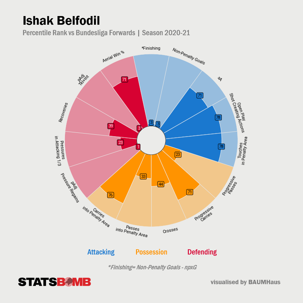 50만 유로가량 대가에 진스하임에서 올라온 이스하크 벨포딜은 율리안 나겔스만(현 FC 바이에른 뮌헨 감독)의 지도로 세 시즌 전, 분데스리가 28경기에 16골을 넣고 "최고의 한 해"를 만끽했지만, 지난 이 년간은 단 한 골도 더하지 못했습니다. 무릎을 수술받아서 오래 쉬기도 했고, 코로나19에 걸려 고생하기도 했습니다. 제바스티안 회네스, TSG 1899 호펜하임 감독이 일라스 베부를 그보다 신뢰하여, 기회도 거의 못 잡았습니다. 기술이 나쁘지 않고, 상대 최종 방어선의 높이를 읽고 아슬아슬한 줄타기를 즐기며, 필요할 때는 거친 힘 싸움도 마다하지 않는 공격수지만, 속도는 무릎을 다친 뒤로 조금 떨어진 듯한 인상을 줍니다. 당장 최전방에 설 선수 숫자를 늘려야 했던 클럽이 "모셔가려는 경쟁"이 거의 없는 선수에게 손을 뻗었습니다. 단년 계약이나, 벨포딜의 연봉은 만만치 않은 수준입니다. 위험성 큰 영입으로, 역시, 물음표를 던지는 이가 많습니다. 그의 최근 행보를 보면, 그에게 무언가 큰 역할을 기대하는 자체가 어불성설입니다. 역시, 반전을 일으킨다면, 더할 나위가 없이 좋겠지만.