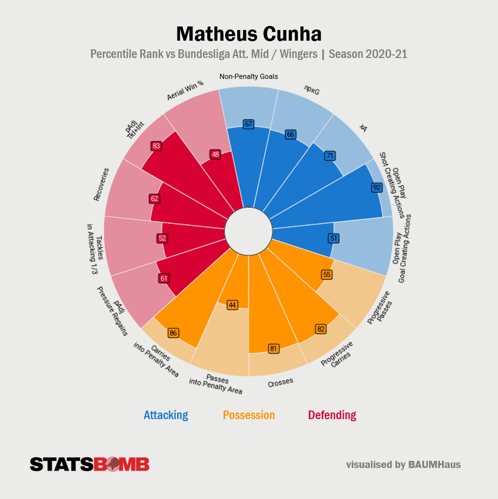 마테우스 쿠냐는 작년 겨울 이적 시장에 헤르타 BSC 유니폼을 입은 뒤로 명실공히 "에이스"로 활약했으며, 이전에 누구도 주지 못한 "에너지"를 팀에 불어넣었습니다. 조그만 틈이라도 보이면, 여지없이 상대 골키퍼를 시험했고, 공이 있는 곳이면, 어디로든 갔습니다. 왼쪽, 오른쪽, 2선 중앙, 최전방, 어디에든 섰고, 상대가 누구든 늘 자기 몫을 위해 뛰었습니다. 올림피아슈타디온 베를린 오스트쿠어베가 그와 동향 출신이자, 클럽 역사상 최고의 선수 중 하나로 사랑받는 마르셀리뉴의 향수를 소환, 이곳에서 그를 향한 기대와 놀라움, 심지어는 자랑스러움이 얼마나 진지한지 보여 주었습니다. 쿠냐는 그러한 관심을 전혀 부담스러워하지 않았고, 오히려, 즐겼습니다. 거칠게 상대를 밀어붙였고, 언제나 "예상치 못한 무언가"를 가져다주었습니다. 작년 여름에도 FC 인테르나치오날레 밀라노 등, 역사 깊은 클럽들이 그를 원했습니다. 역시 떠날 기회가 주어졌는데, 그때 많은 베를린 사람들은 쿠냐가 조금이라도 이곳에 더 머물러 주기를 간절히 바랐습니다. 그래서, 선수가 베를린에서 생활에 만족한다며 잔류를 선언했을 때, 그의 인기는 더욱 뜨거워졌습니다.