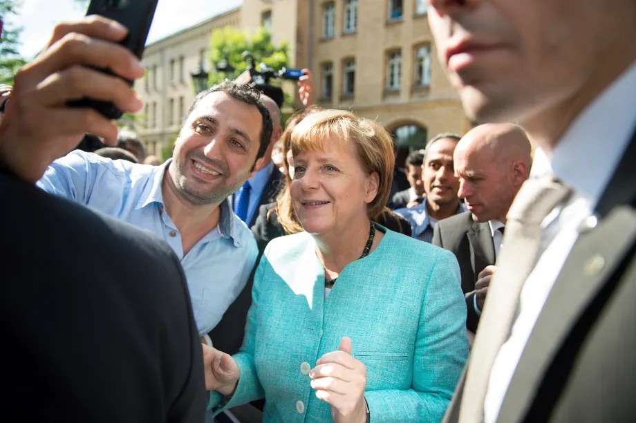 국경을 열어 두기로 하고 며칠 뒤에 당신은 슈판다우의 초기 수용소를 방문했어요. 유명한 셀피가 탄생한 곳인데, 당신은 이 때문에 난민 행렬을 부추겼다고 비난당했어요.