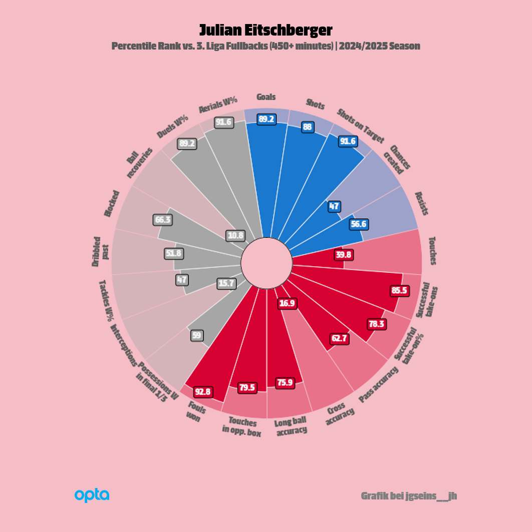 리히텐베르크에서는 이래저래 아쉬움이 남는 하루를 보냈습니다. '그래도' 다가오는 일 년, 헤르타 BSC에는 율리안 아이치베르거의 활약이 필요합니다. 그가 데요바이시오 제이파위크와 경쟁하며 동반 상승효과를 가져와야, 존조 케니(계약 만료 후 팀을 떠나, PAOK에 합류했습니다.)가 떠난 자리를 채울 수 있기 때문입니다. 케니는 지난 시즌, 2. 분데스리가에서만 무려 32경기, 2,869분을 뛰었습니다. 파랗고 하얀 유니폼을 입고 그보다 많은 경기를 소화한 선수는 이브라힘 마자가 유일하나, 그마저도 출전 시간은 케니보다 적었습니다. 케니는 여덟 개 도움을 올렸고, 이 역시, 미카엘 퀴장스의 일곱 개보다 많은, 팀 내 최다 기록입니다. 같은 기간, 아이치베르거는 에센에서 "잊지 못할 한 해"를 보냈습니다. 만인이 그를 지난 시즌, 3. 리가 최고의 윙백으로 꼽았을 만큼, 그는 (특히 공격적인 면에서) 가파르게 성장했습니다. SK 슈툼 그라츠, FK 보되/글림트 등, UEFA 주관의 유럽 클럽 대항전에 나서는 해외 클럽들이 그를 원하기도 했지만, 선수는 잔류를 택했고, 올림피아슈타디온 베를린에서 최대한 많은 경기에 나서겠다는 포부를 밝혔습니다. 스스로 동기를 부여하는 이 목표가 이루어지기를 여러 사람이 '같이' 바라고 있습니다. 어제보다는 나은 내일이 필요합니다.