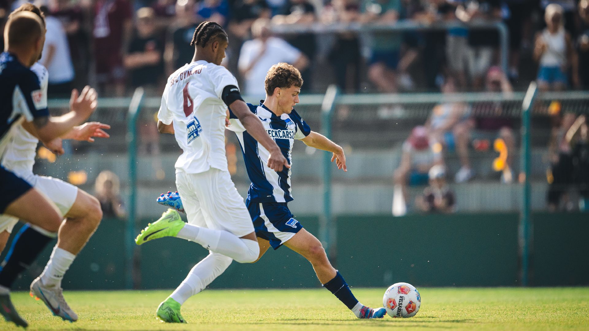 헤르타 BSC가 어제, 슈포트포룸 호헨쇤하우젠에서 열린 BFC 뒤나모와 친선 경기에 6 대 0(전반 종료 시점에는 1 대 0)으로 이겼습니다. 2025-26년 한 해 농사를 준비하며 치른 두 번째 시합, 두 번째 승리입니다. 마텐 빙클러가 두 골을 넣었고, '비공식' 데뷔전에 나선 모리스 크라텐마허(FC 바이에른 뮌헨에 적을 둔 채로 최근, 슈프레아테너와 일 년간 유효한 임대 계약을 맺었습니다.)도 한 골과 한 개 도움을 신고, 강렬한 인상을 남겼습니다. 요운 다구르 소르스테인손도 두 골을 넣었습니다. 경기 결과에 연연할 단계는 아니라지만, 선수들이 신체적으로나 정신적으로 무장하면서 기분 좋은 에너지를 발산하려면, 아무래도 웃는 편이 낫습니다. 단, 예상치 못한 손실도 있었습니다. 경기 시작 삼십여 분 전, 몸을 풀던 파스칼 클레멘스가 오른쪽 발목을 접질려서 주변 도움을 받아 잔디 위를 벗어났습니다. 일찍이 슈테판 라이틀 감독은 최종 방어선에 클레멘스와 존 앤서니 브룩스, 다르더이 마르톤의 선발 출격을 예고했는데, 클레멘스가 갑작스레 경기장에 설 수 없는 상황을 맞았으니, 리누스 게히터를 그 대신 세울 수밖에 없었습니다. 클레멘스는 한동안 침울한 표정으로 고개를 저을 뿐이었습니다. 한데, 시 동쪽으로 원정을 떠난 베를린 노파의 불운은 여기서 끝이 아니었습니다. 전반 13분경, 브룩스가 종아리에 찌르는 듯한 통증을 느껴, 손을 들고 직접 교체를 요청했습니다(곧, 토니 라이스트너가 그를 대신했습니다.). 그는 상대 중앙 수비수, 토비아스 군테가 길게 공을 찰 때, 자기 앞으로 침투하는 자말 로게로를 막으려고 몸을 움직이다가 깽깽이걸음을 시작했습니다(군테가 찬 공은 너무 멀리 날아서 로게로의 움직임과 관계없이, 그대로 데니스 스마시 골키퍼 품에 안겼습니다.). 지난해 준비 기간에는 훈련 도중 발목을 심하게 다쳐서 일 년을 쉰 그인데, 오랜 기다림 끝에 복귀한 지 단 두 경기 만에 '또' 쓰러지고 말았습니다. 동료와 교대할 정도는 아니었지만, 브룩스가 다치고 십 분 정도 흐른 뒤에는 레온 옌젠의 얼굴에서 피가 흐르기도 했습니다. 래리나나 욀러스가 공과 관련 없는 상황에서 손을 크게 쓰는 바람에 긁혔습니다. BFC 뒤나모 선수들의 거친 행동에 감정이 다소 올라와 있던 헤르타 BSC 선수들이 화를 표출하면서 잠시 충돌이 빚어졌습니다. 일 년 전, 파비안 레제와 케빈 제사가 친선 경기 중에 다쳐서 소중한 시간을 놓쳤고, 올해도 이미 마리우스 게어스베크(어깨 수술)와 루카 슐러(엉덩이 근육 부상), 데요바이시오 제이파위크, 파울 제구인(이상 종아리 부상), 팀 골러(어깨 부상) 등이 '부상자 명단'에 이름을 올린 헤르타 BSC입니다. 클레멘스와 브룩스까지 더해진 상황, 체력적으로 준비하고, 전술적인 틀을 확립하면서도 선수들이 최고의 몸 상태로 시즌에 들어갈 수 있도록 각별한 주의와 약간의 운이 필요합니다.